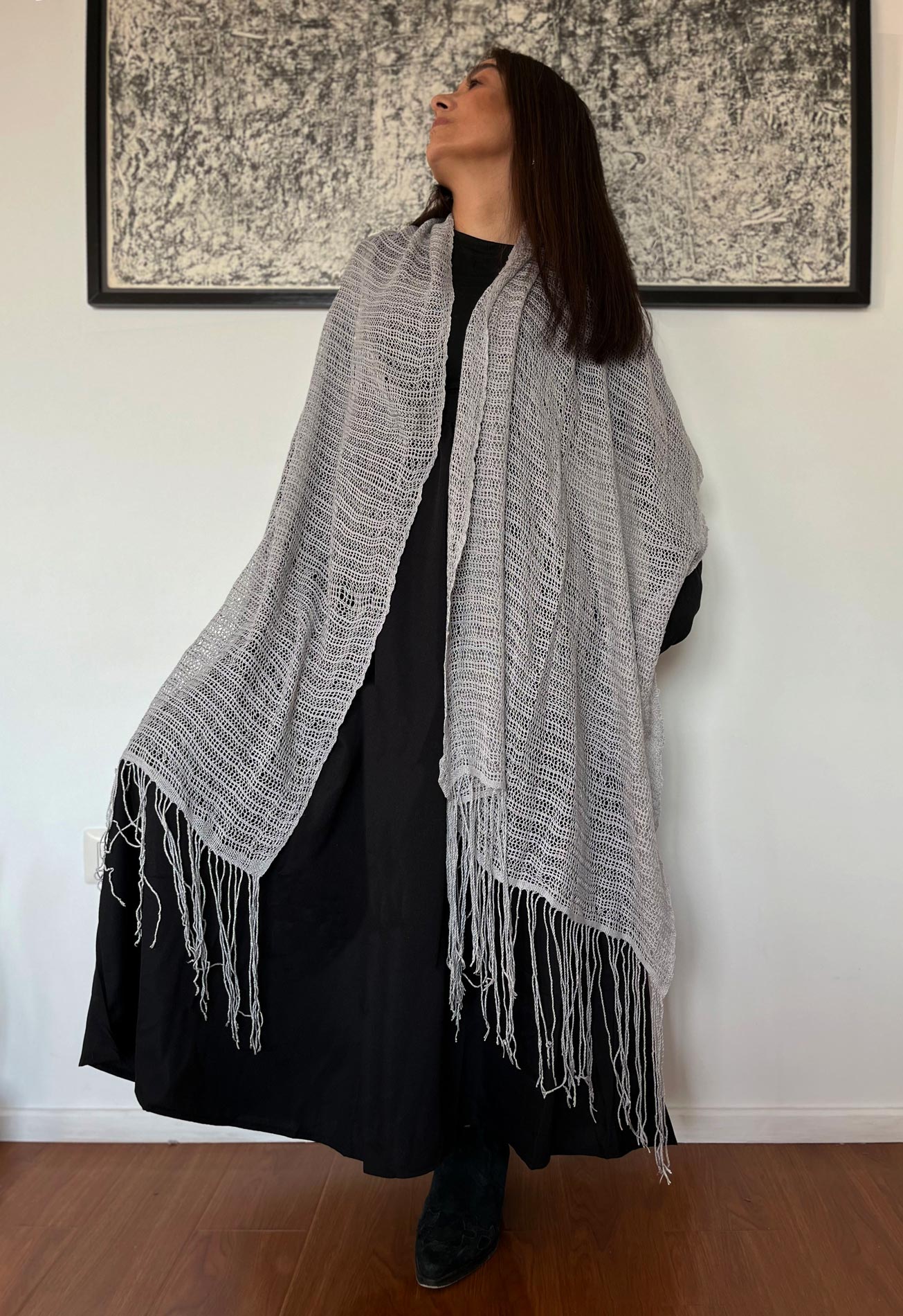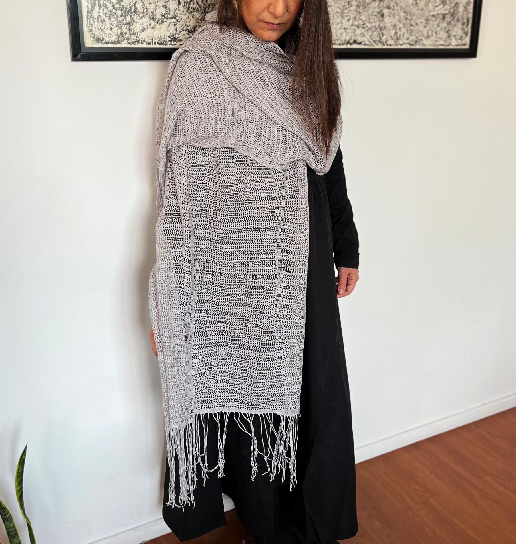 Chal gasa seda delgada gris